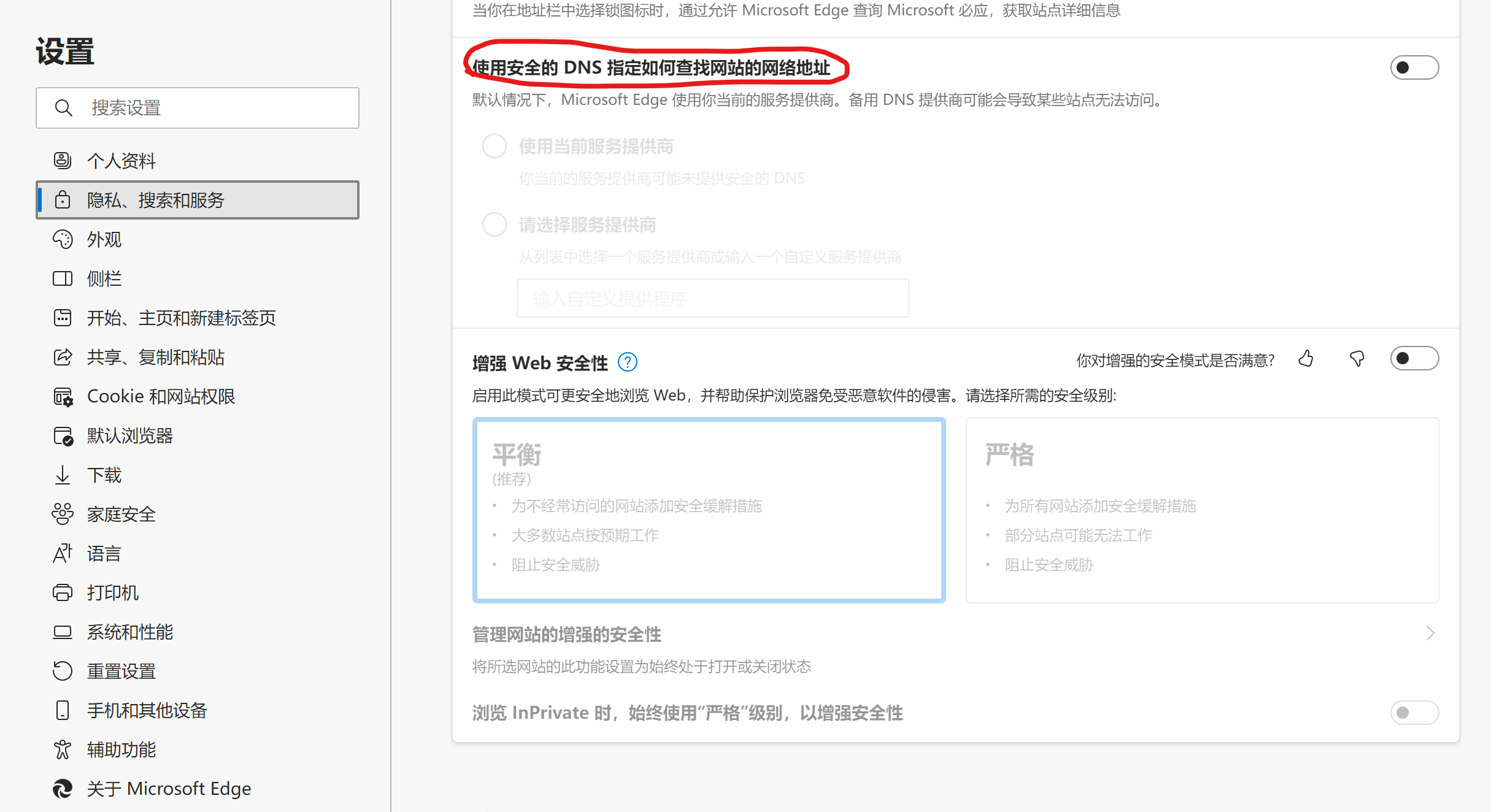 关闭浏览器 安全DNS 功能