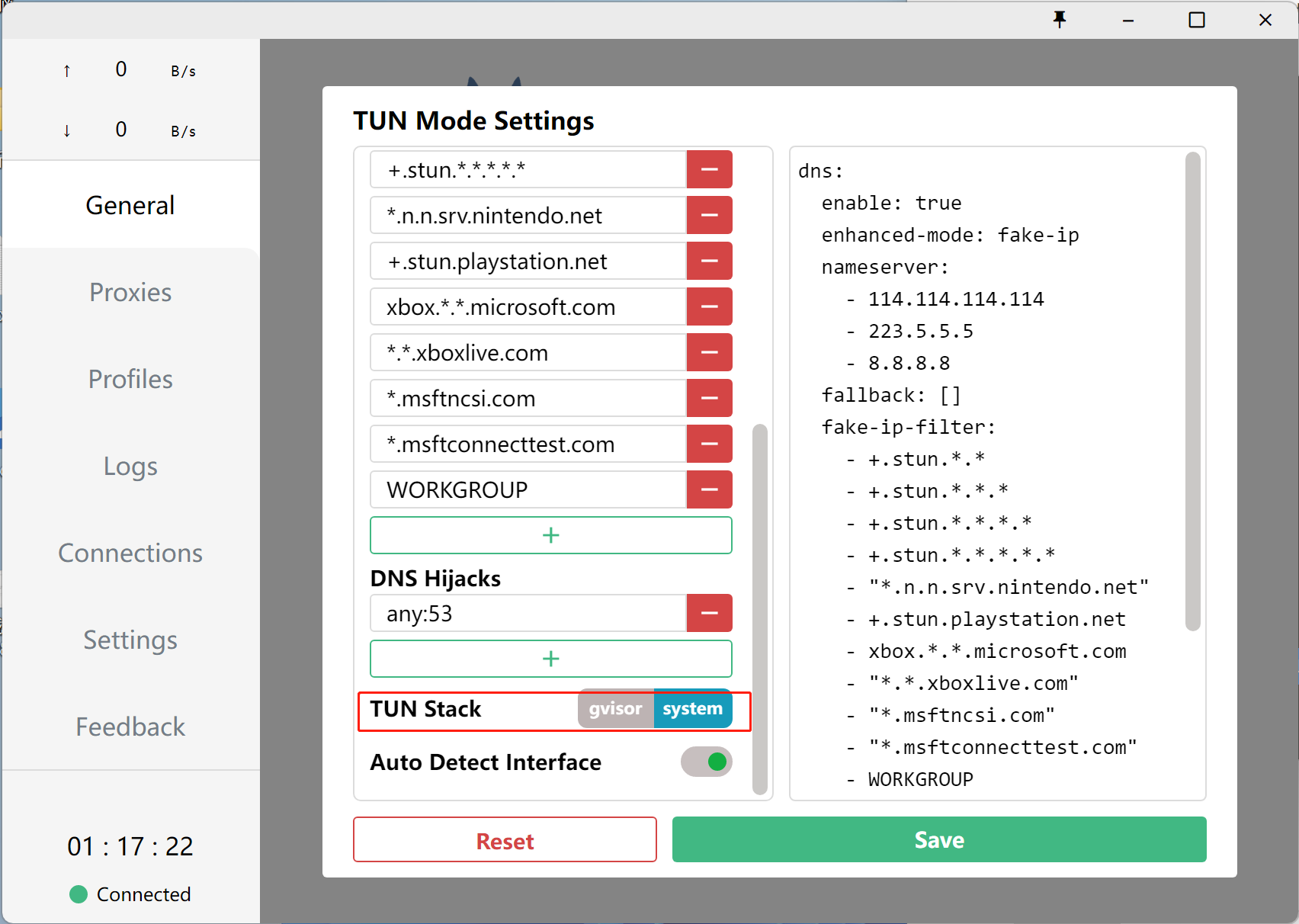 如果走代理的网站仍然打不开,尝试将TUN Stack设置为